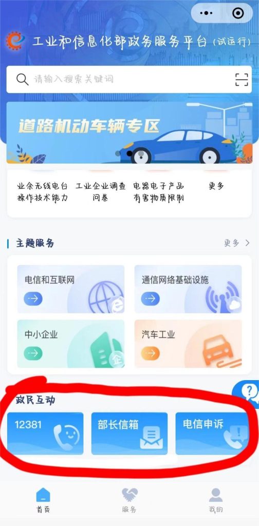 小程序還貼心設置了12381政務服務熱線、電信申訴等政民互動渠道方便用戶遇到困難時咨詢解決。
