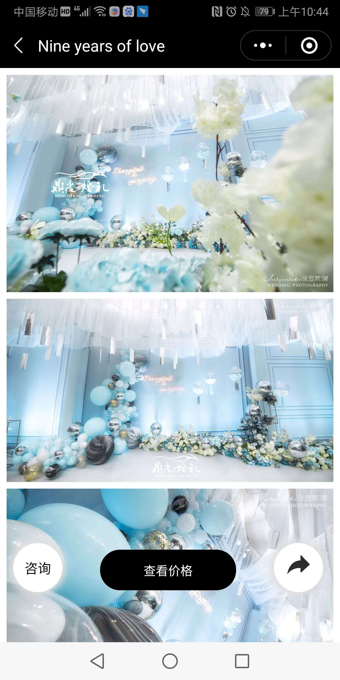 通過分享功能,可以將婚禮現場分享轉發給親朋好友,可獲得相應的折扣,這樣更有利于開拓商家的渠道,遠遠比投錢打廣告要強很多,俗話說商家說自己一百句好,不如朋友說一聲好。
