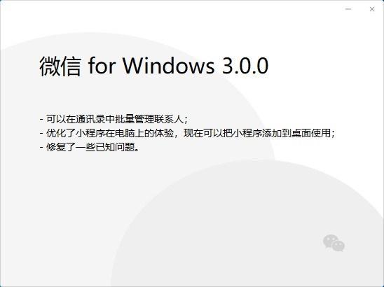 據(jù)悉,微信 for Windows 3.0.0 內(nèi)測版發(fā)布,新增了小程序添加到桌面使用,以及可以在通訊錄中批量管理聯(lián)系人。