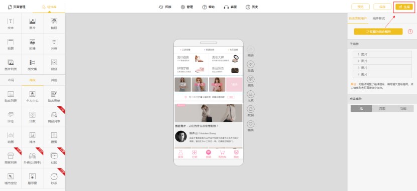 5、頁面編輯好后,并給每個頁面做好跳轉,先預覽確保邏輯無誤,再點擊右上角的“保存”,然后點擊“生成”即可。